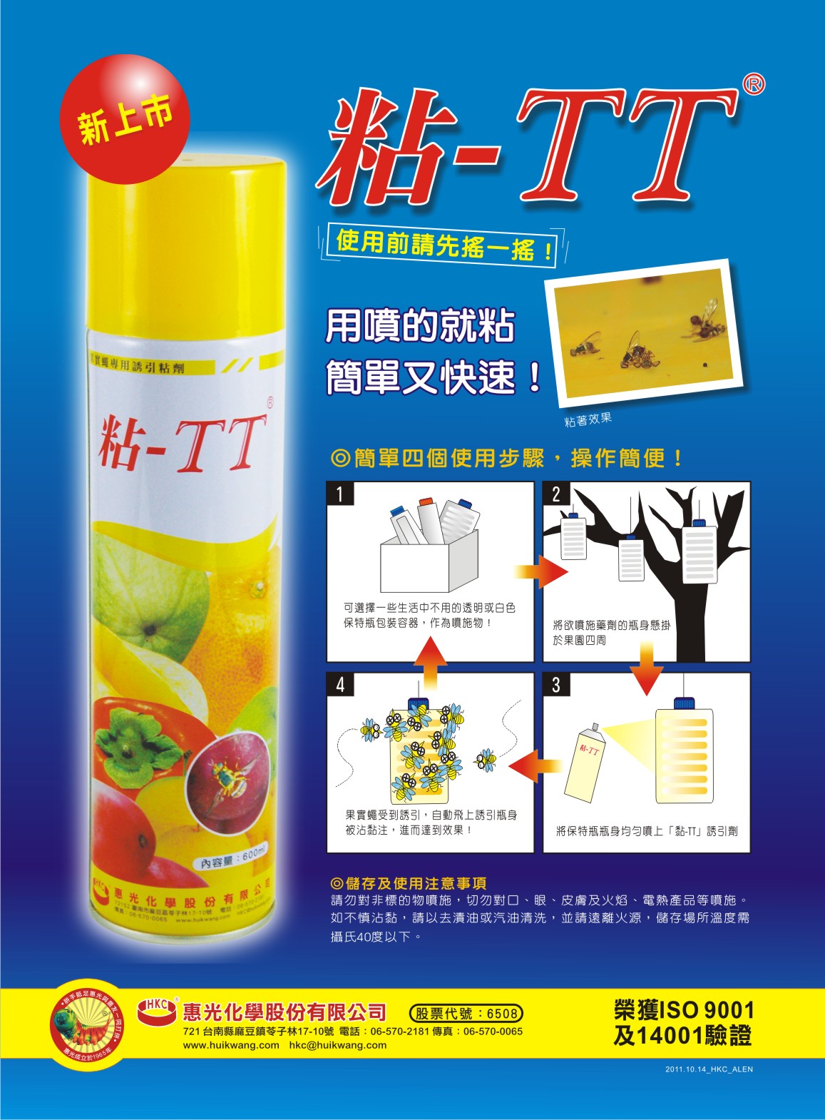 果實蠅專用誘引粘劑(粘–TT)新上市,詳情請洽農科業務部.
