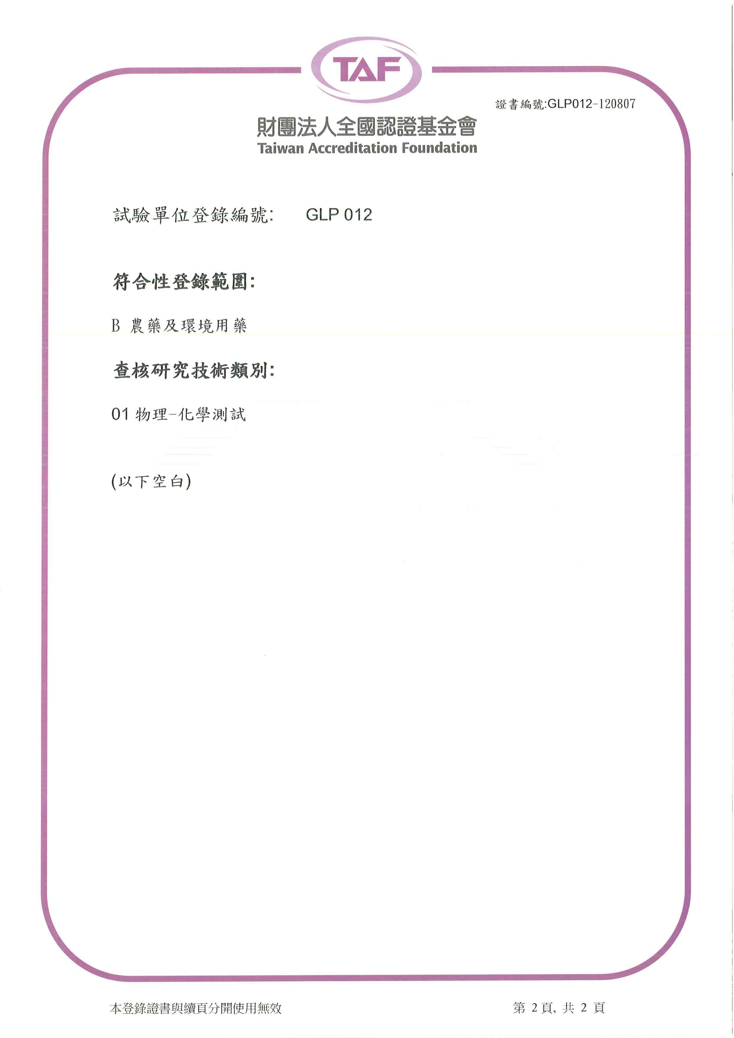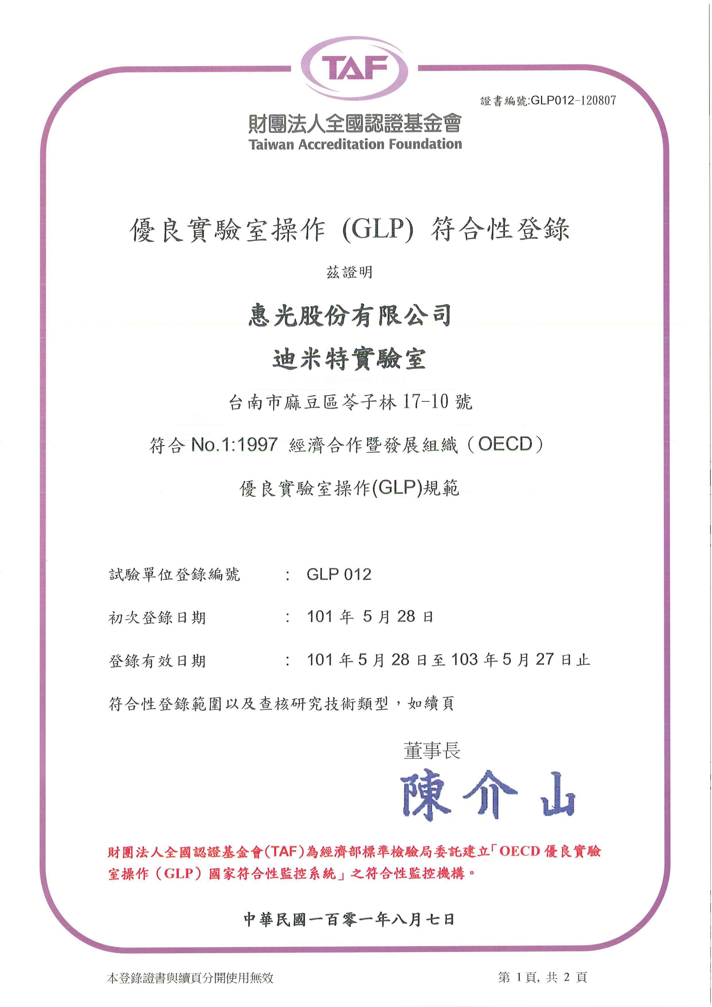 迪米特實驗室符合No.1:1997經濟合作暨發展組織(OECD)優良實驗室操作(GLP)規範