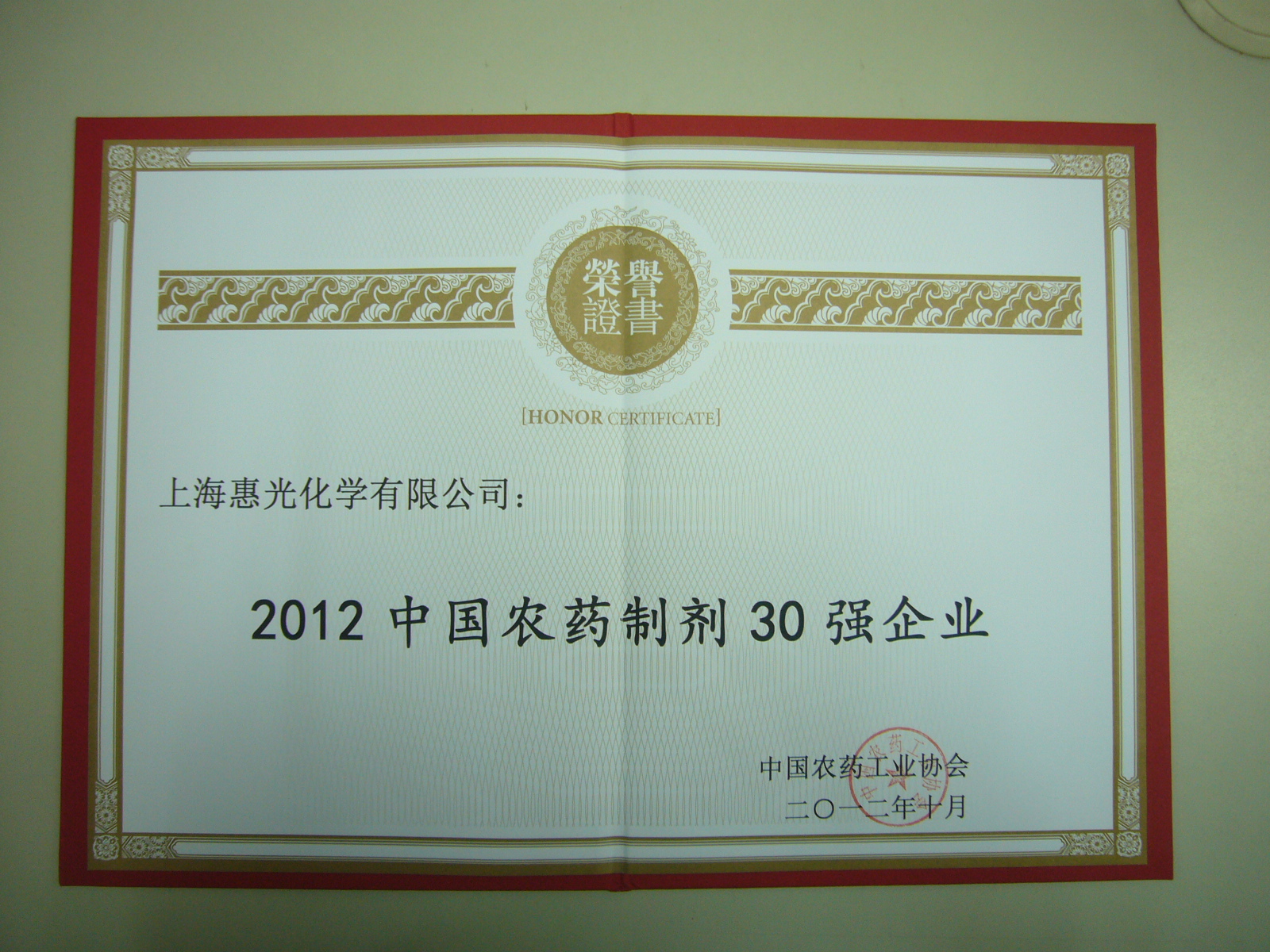 上海惠光名列2012年中國農葯制劑30強企業